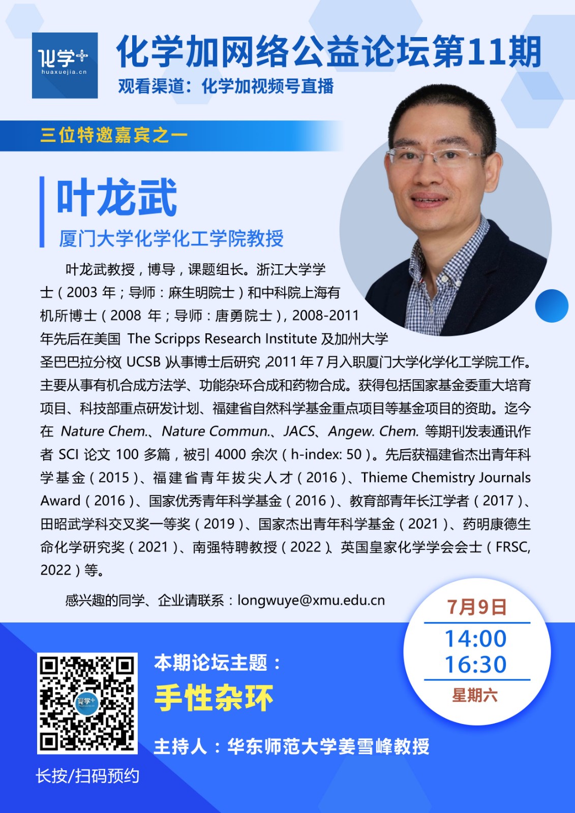 關(guān)注“化學(xué)加”微信公眾號(hào)、化學(xué)加視頻號(hào),預(yù)約準(zhǔn)時(shí)收看直播。