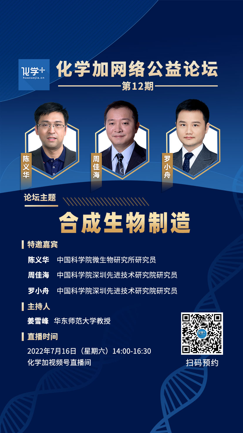 《化學(xué)加網(wǎng)絡(luò)公益論壇》是在化學(xué)加過往線下年度峰會基礎(chǔ)上,于2022年4月推出的一檔直播欄目,每周六14:00-16:30在化學(xué)加視頻號下直播開講,將貫穿化學(xué)化工、醫(yī)藥日化、新材料新能源領(lǐng)域與前沿化學(xué)密切相關(guān)的產(chǎn)業(yè)鏈。我們將分批邀請該領(lǐng)域杰出科學(xué)家、優(yōu)秀企業(yè)家,及有代表性的創(chuàng)業(yè)CEO群體做客化學(xué)加。關(guān)注化學(xué)加,看到不一樣的化學(xué);化學(xué)加,加您更精彩!歡迎推薦、自薦:gongjian@www.yqxsz.com。