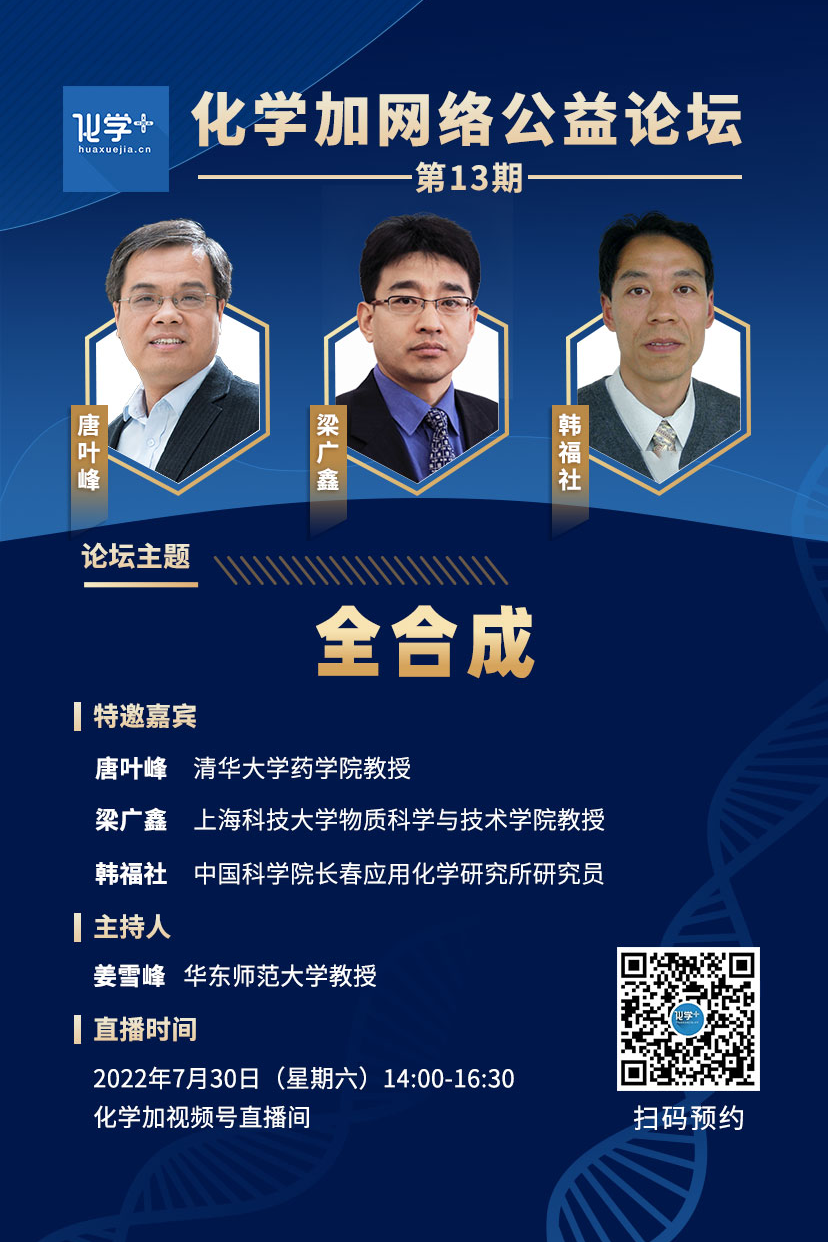關(guān)注“化學(xué)加”微信公眾號、化學(xué)加視頻號,預(yù)約準時收看直播。