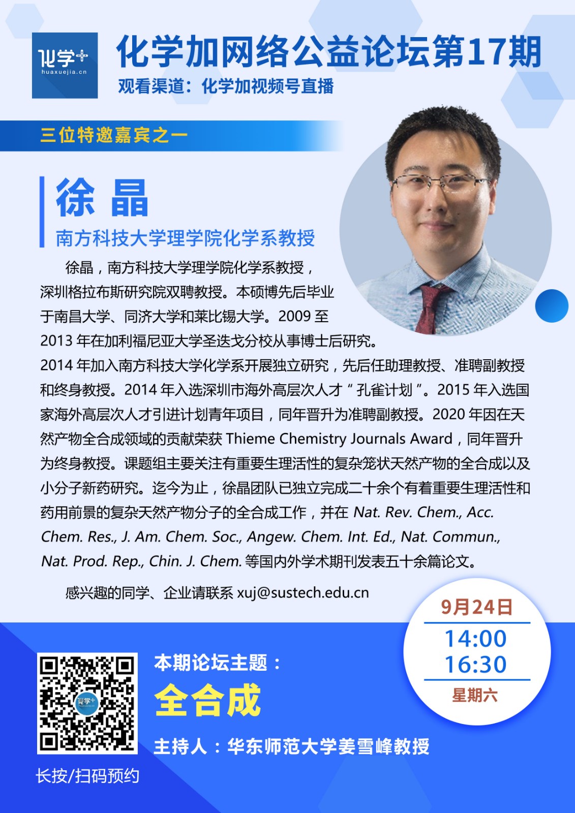 徐晶 南方科技大學(xué)理學(xué)院化學(xué)系教授:復(fù)雜籠狀天然產(chǎn)物的全合成