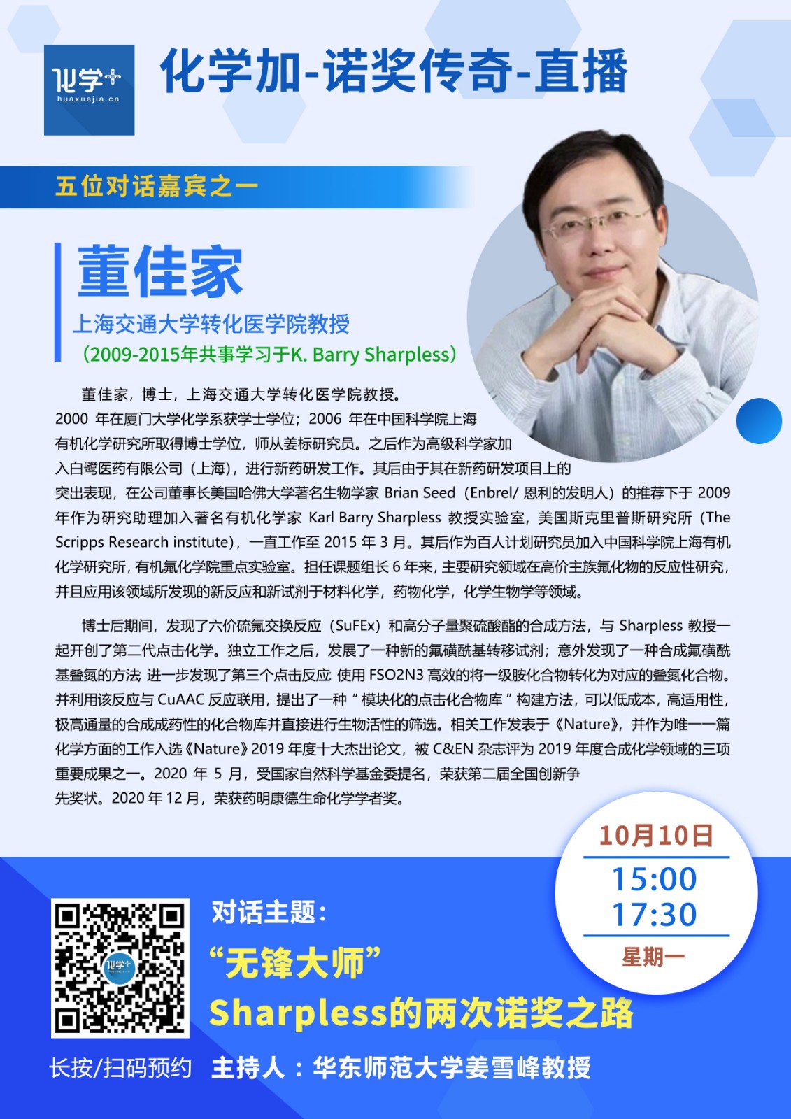 董佳家 上海交通大學(xué)轉(zhuǎn)化醫(yī)學(xué)院教授(2009-2015年共事學(xué)習(xí)于K. Barry Sharpless)