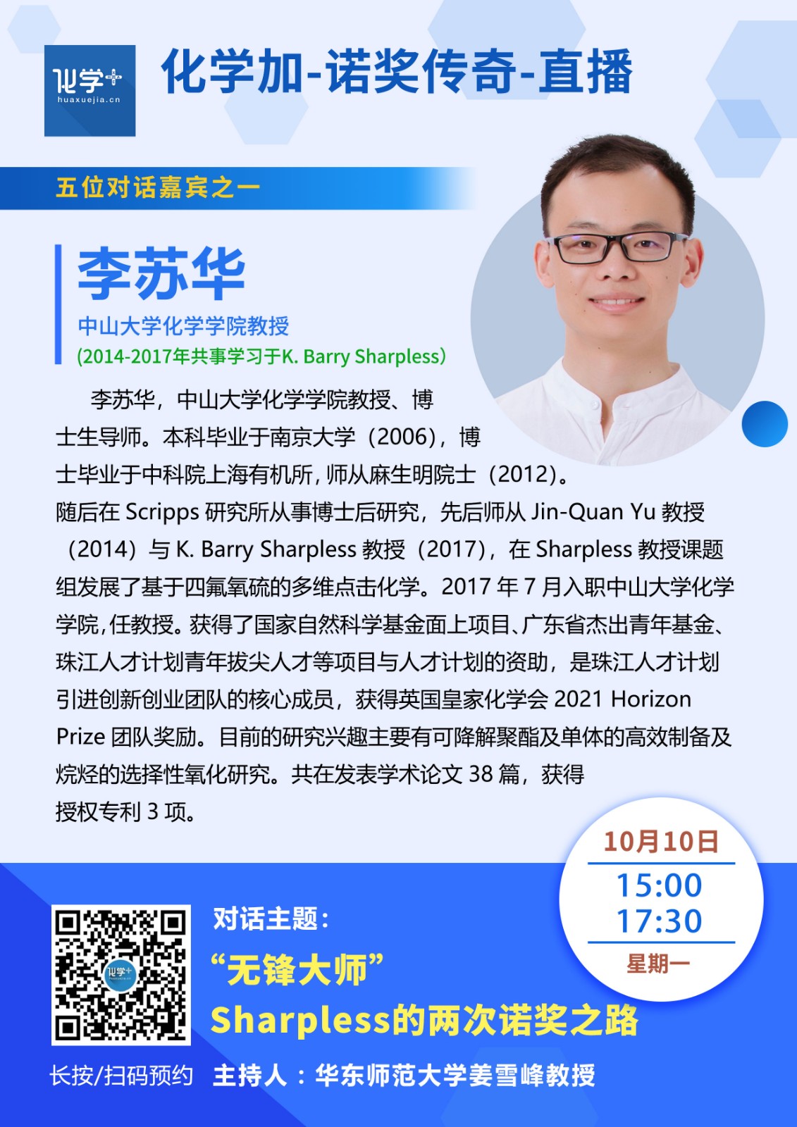 李蘇華 中山大學(xué)化學(xué)學(xué)院教授 (2014-2017年共事學(xué)習(xí)于K. Barry Sharpless)