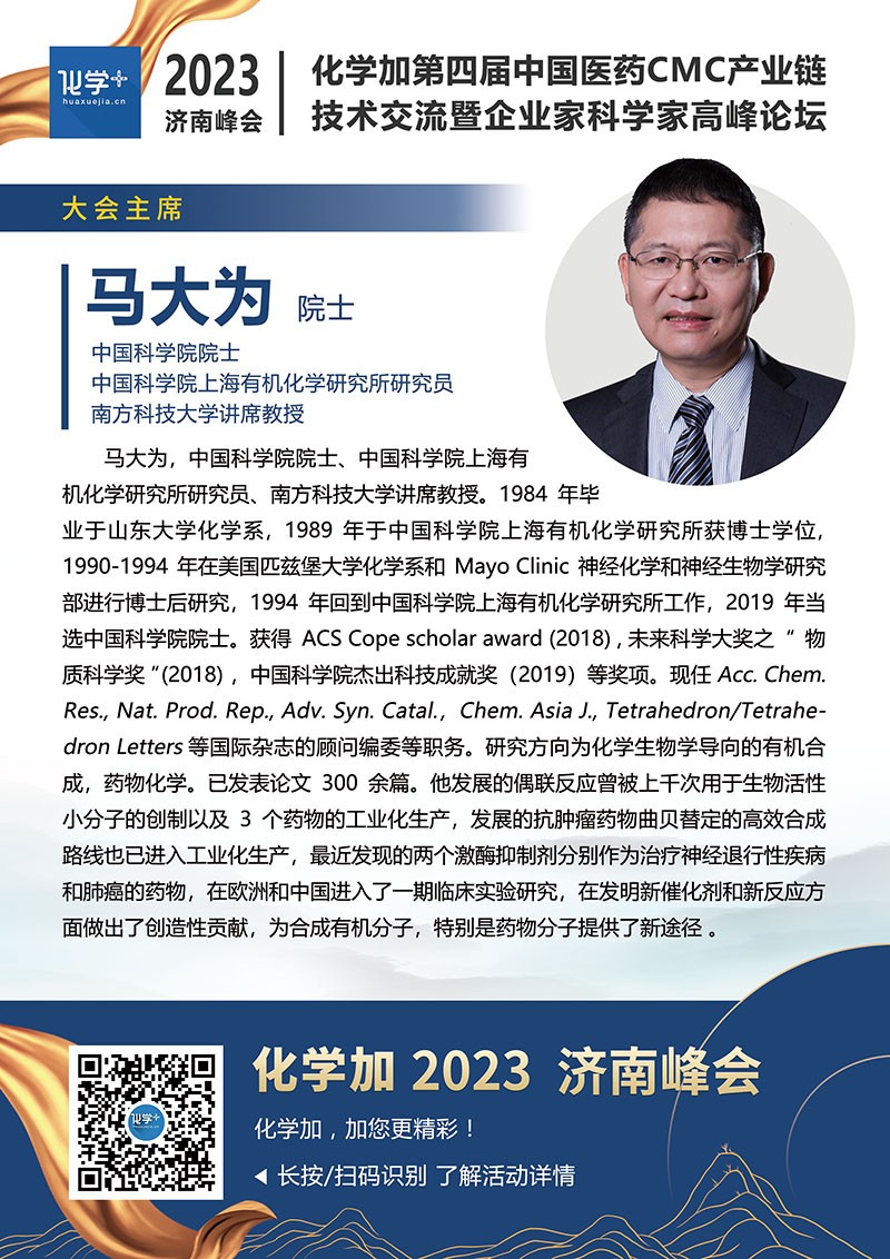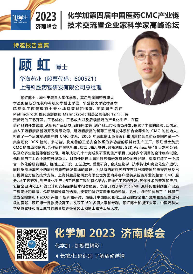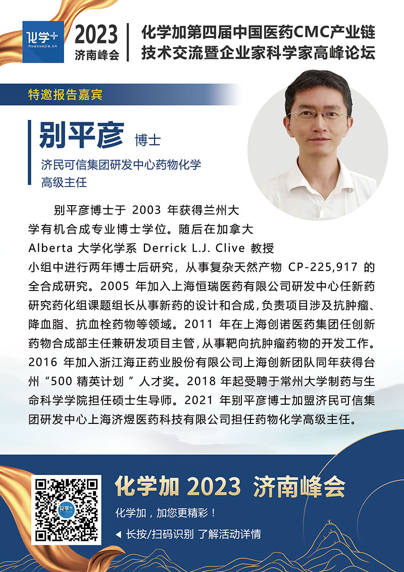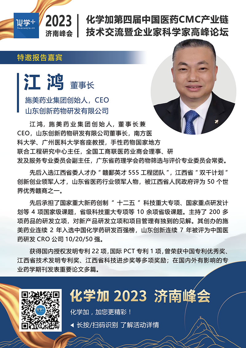 【嘉賓簡介】化學(xué)加2023濟南峰會:第四屆中國醫(yī)藥CMC產(chǎn)業(yè)鏈技術(shù)交流暨企業(yè)家科學(xué)家高峰論壇
