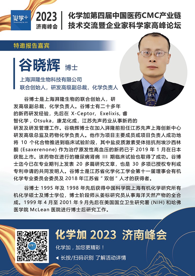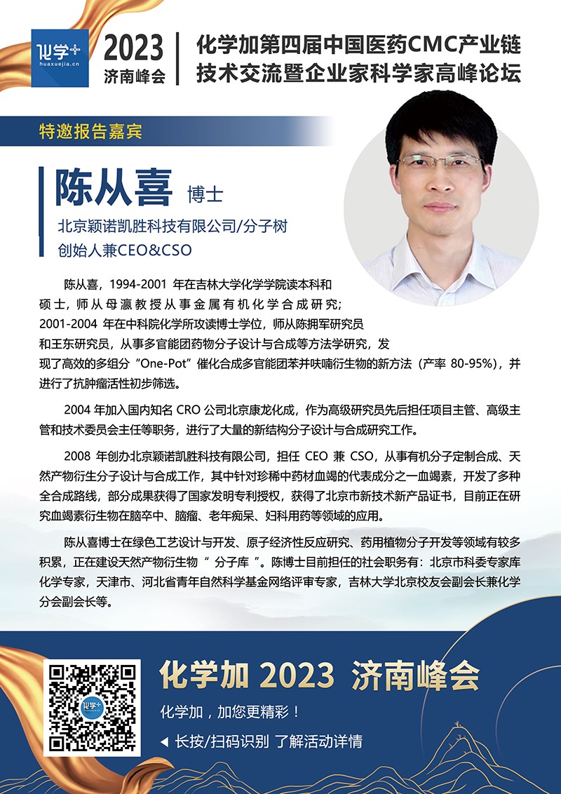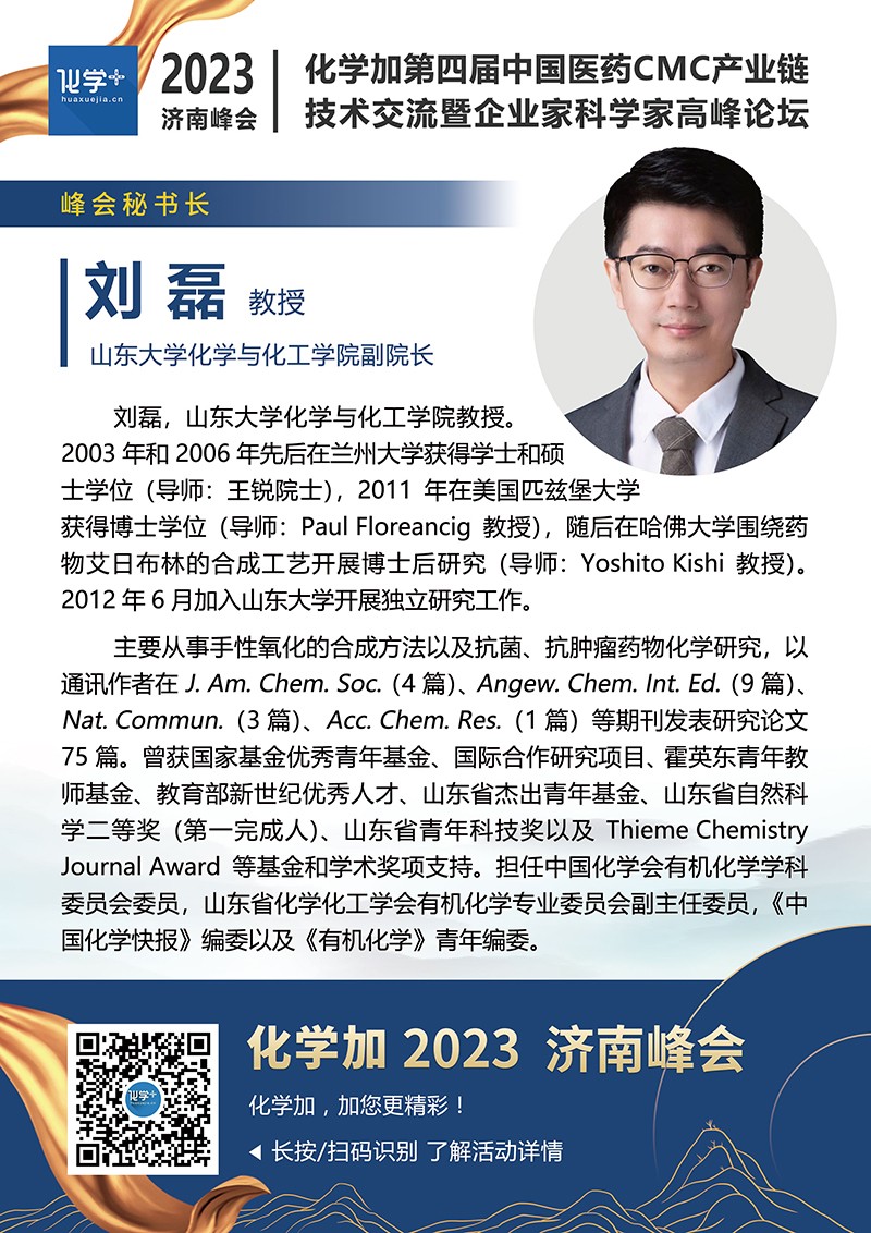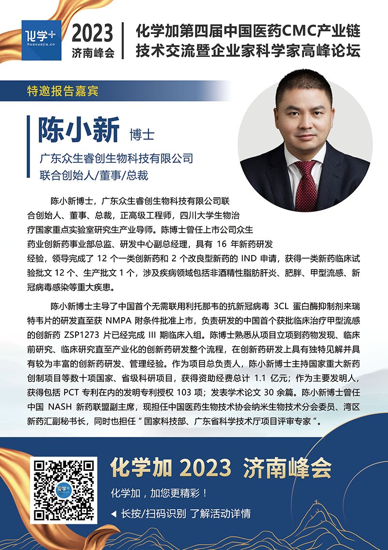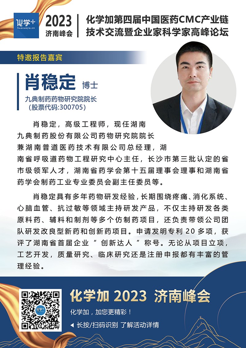 【嘉賓簡介】化學(xué)加2023濟南峰會:第四屆中國醫(yī)藥CMC產(chǎn)業(yè)鏈技術(shù)交流暨企業(yè)家科學(xué)家高峰論壇