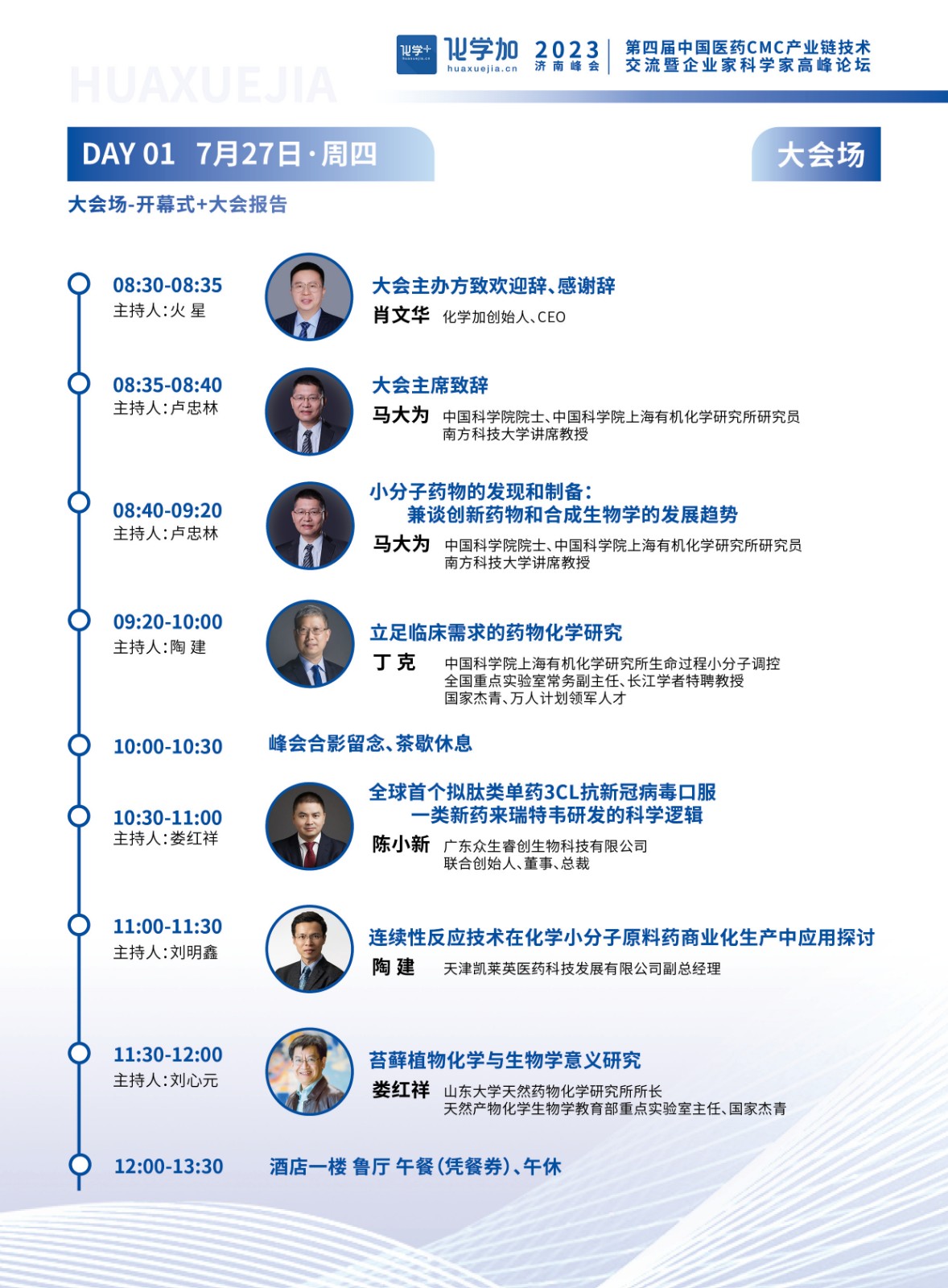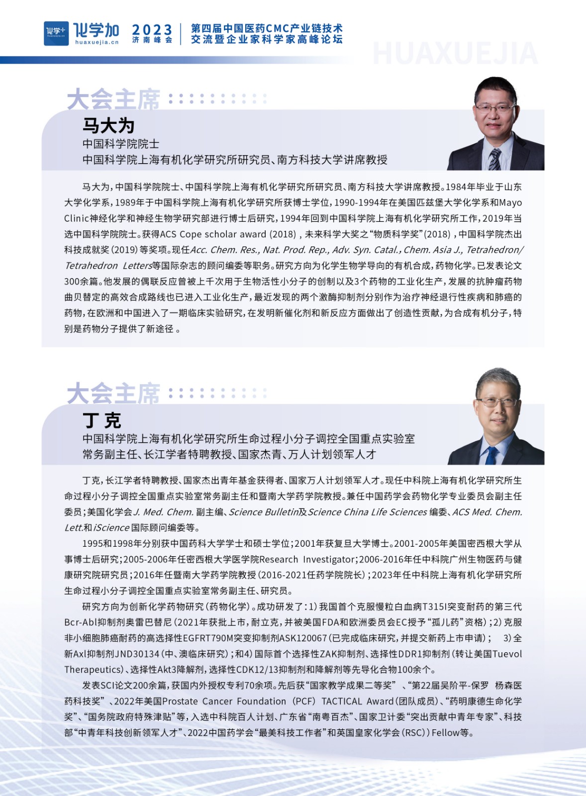 導讀:2023年7月27-28日,化學加第四屆中國醫(yī)藥CMC產(chǎn)業(yè)鏈技術交流暨企業(yè)家科學家高峰論壇在濟南順利舉辦,中國科學院院士、上海有機化學研究所研究員馬大為,中國科學院上海有機化學研究所生命過程小分子調(diào)控全國重點實驗室常務副主任丁克擔任大會主席,50余位知名企業(yè)家、科學家在峰會上做了報告分享,峰會通過化學加視頻號、六摩爾視頻號等平臺線上直播,線上線下累計超過1.5萬人次參與了本次峰會。