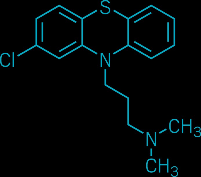 氯丙嗪是首批直接治療精神疾病的藥物之一。1950年12月,法國羅納·普朗克化工集團的化學家首次合成出氯丙嗪。那時針對精神分裂癥等精神病的治療不僅無效,而且往往伴隨著風險。