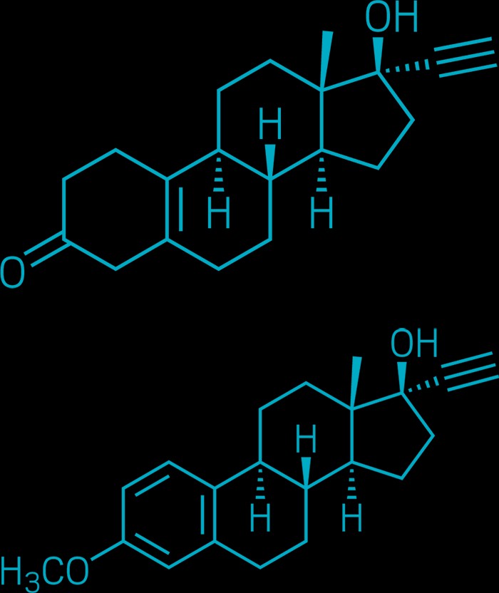 1951年,化學家卡爾·杰拉西、路易斯·米拉蒙特斯和喬治·羅森克蘭茲合成出首個黃體酮類似物炔諾酮,它在低劑量下口服也有效,為開發(fā)口服避孕藥打開了大門。一年后,化學家弗朗克·科爾頓合成出了一種類似的化合物異炔諾酮。
