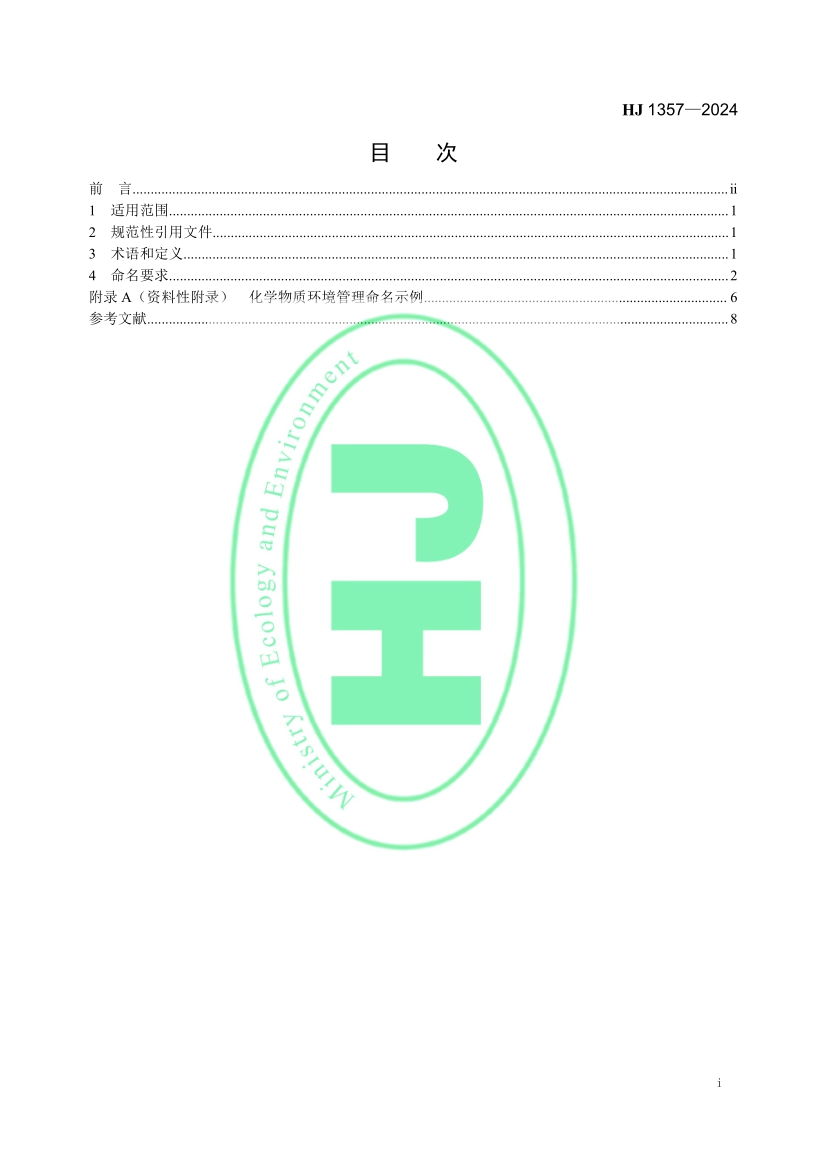化學物質環(huán)境管理命名規(guī)范(HJ 1357—2024)