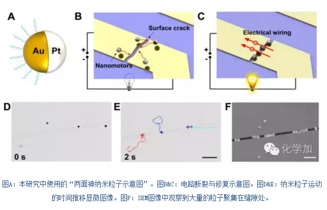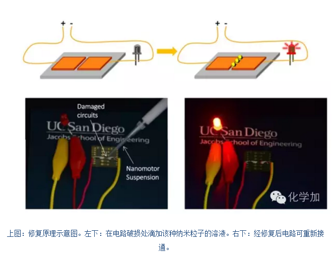 受血小板凝血并修復傷口原理的啟示,Li想到如果這些粒子遇到電路中的裂紋,他們就會聚集在此重新接通電路。但問題是,納米粒子怎么能找到這些破損點呢?