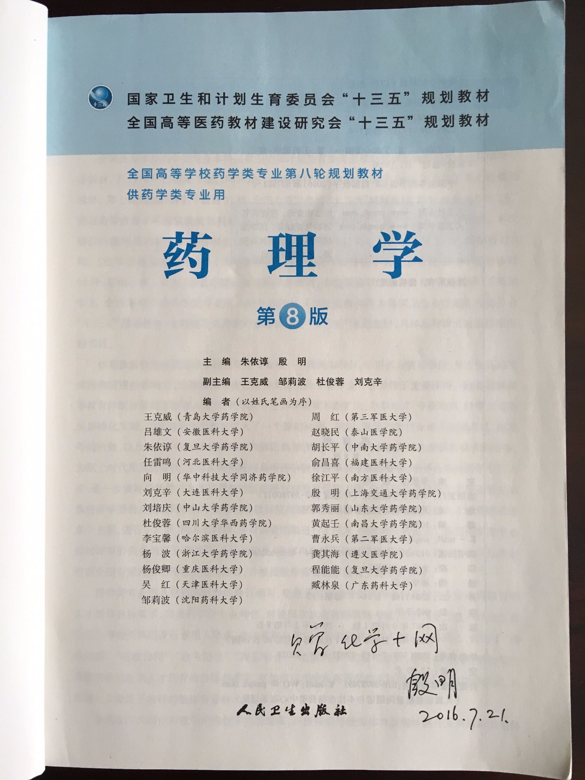 殷明,上海交通大學(xué)藥學(xué)院教授,博士生導(dǎo)師。第二軍醫(yī)大學(xué)醫(yī)學(xué)博士;美國匹茲堡大學(xué)神經(jīng)科學(xué)系博士后。上海市藥理學(xué)會(huì)常務(wù)理事,中國藥理學(xué)會(huì)神經(jīng)藥理專業(yè)委員會(huì)常務(wù)委員。曾任第二軍醫(yī)大學(xué)藥學(xué)院藥理學(xué)教研室主任。在任期間,組織申報(bào)首次藥理學(xué)國家重點(diǎn)學(xué)科成功。2003年9月起任上海交通大學(xué)藥學(xué)院教授,2004~2012先后任學(xué)院教學(xué)、科技副院長。在國內(nèi)外發(fā)表論文110余篇;人民衛(wèi)生出版社藥學(xué)專業(yè)《藥理學(xué)》第7版共同主編(2011.7),主編教材2部,副主編專著、教材5部,參編專著、教材20部。獲軍隊(duì)科技進(jìn)步二等獎(jiǎng)一項(xiàng);立三等功一次。