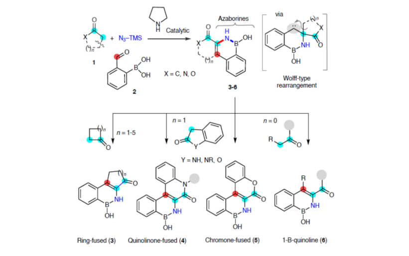 近日,印度中央藥物研究院與科學與創(chuàng)新研究院的Ravindra Kumar團隊報道了一種通過Wolff-型重排實現非張力環(huán)酮(n = 4-8)擴環(huán)的有機催化三組分模塊化合成方法,成功構建了環(huán)稠合BN等排...