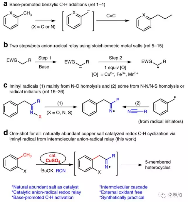 近日,中國科學(xué)技術(shù)大學(xué)的康彥彪研究員課題組和南京工業(yè)大學(xué)曲劍萍教授合作報道了堿促進的芐位C-H鍵活化和銅催化的碳負離子自由基氧化還原策略結(jié)合的環(huán)化反應(yīng),實現(xiàn)了以甲苯和腈類衍生物為原料的N-H吲哚及其類...