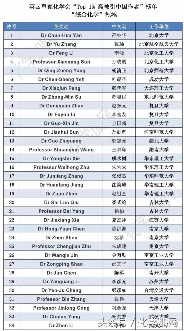 為彰顯中國作者對國際化學(xué)研究領(lǐng)域的突出貢獻(xiàn),英國皇家化學(xué)會對旗下四十多本期刊發(fā)表論文的引用情況進(jìn)行統(tǒng)計,將 2014、2015 年發(fā)表的文章 在2016 年的被引次數(shù)在所屬領(lǐng)域全...