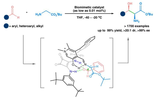 近日,上海師范大學(xué)/上海交通大學(xué)的趙寶國教授和肖曉教授團隊首次實現(xiàn)了蘇氨酸醛縮酶催化的甘氨酸aldol反應(yīng)的仿生不對稱催化模擬,攻克了這一困擾領(lǐng)域四十年的催化難題。...
